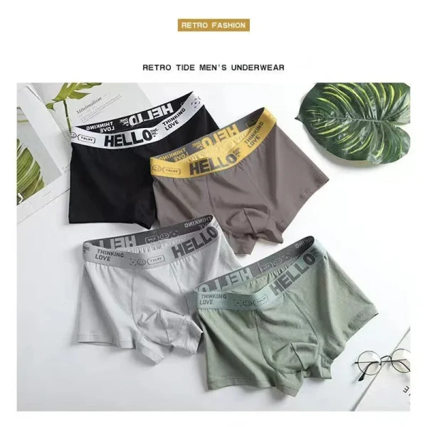 5PCS Boxer Panties Men Letter Underwear Trunks Sexy Underpant Comfortable Breathable Soft Cotton Panties Boxer Shorts Plus Size