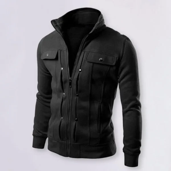 Fashionable Men Outerwear Men’s Solid Color Stand Collar Jacket with Buttons Zipper Closure for Spring Autumn Long for Men