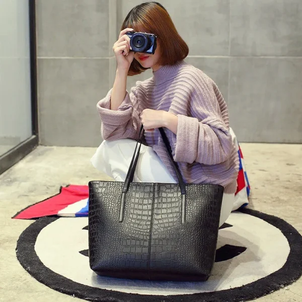 2025 Designer Faux Croc-Textured Tote Bag Women’s PU Leather Large Spacious Work Commute Beach Shopper Water-resistant Zipper