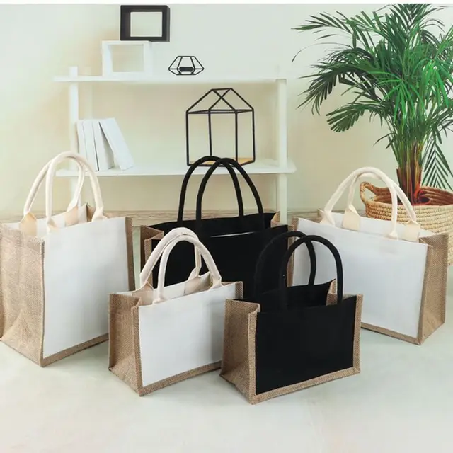 Reusable DIY Hand Drawn Blank Sack Black White Storage Bags Shopping Bag Daily Commutting Foldable Tote Handbag
