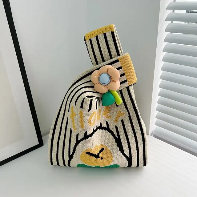 Fashion Flower Knot Wrist Bag Wool Printed Tote Bag Handbag Purse Festival Gift Bag Travel