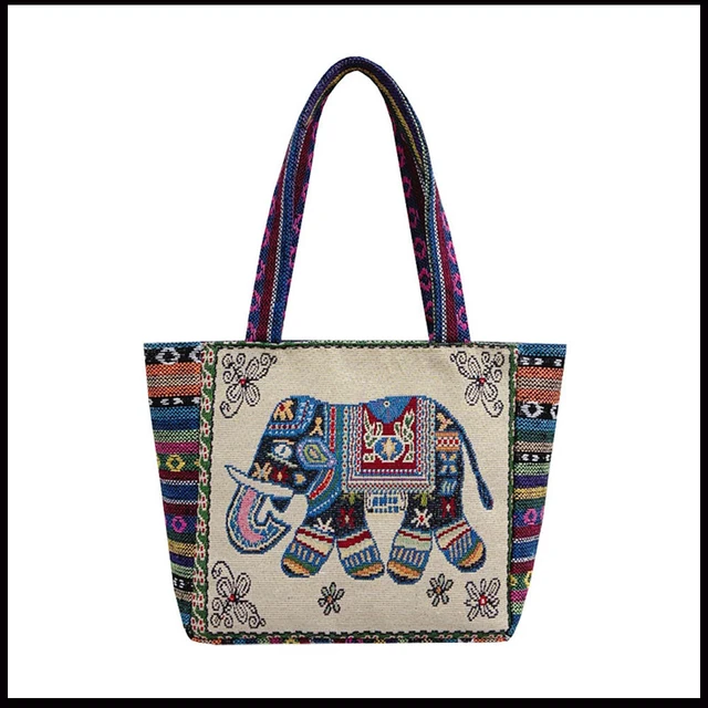 Women Large Capacity Handle Zipper Canvas Tote Shoulder Bag New Fashion Girl Ethnic Style Retro Animal Print Cloth Handbags