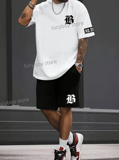 LB Printed Sport T-shirt+shorts Suit Set Men Male Luxury Tracksuit Outfit Summer Oversized tracksuit 2 Piece Set men Clothing
