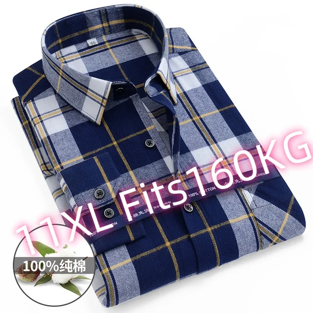 S – 11XL Fits 160KG 100 Cotton Men’s Flannel Shirts Long Sleeve Classic Plaid Men’s Flannel Shirts Long Sleeve Big and Tall