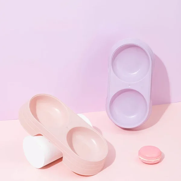 Pet Double Bowl Plastic Cat Dog Food Drinking Tray Feeder Pet Feeding Watering Bowl Pet Supplies Accessories