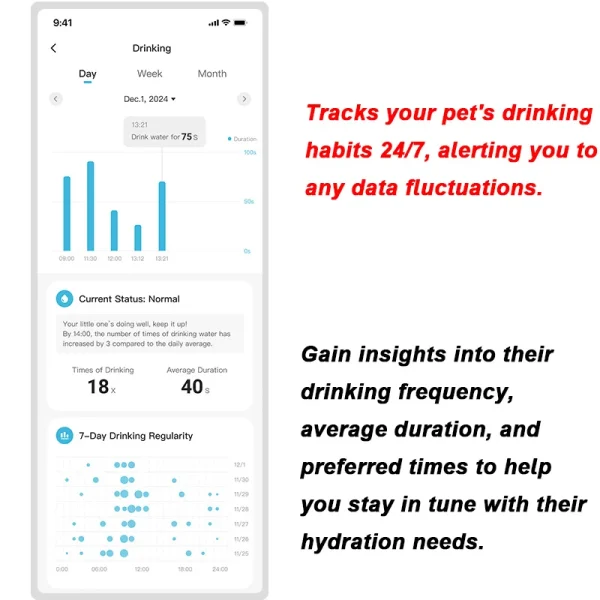 Hiigge Cat Water Fountain SE 70mai Wireless Automatic Pet Drinker for Dog Cats Water Dispenser with data analysis