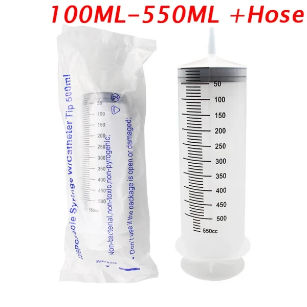 Pet Feeding Large Capacity Syringes 100ML-550ML With 1M Hose Plastic Injector Reusable Pump Nutrient Syringe Measuring Washable