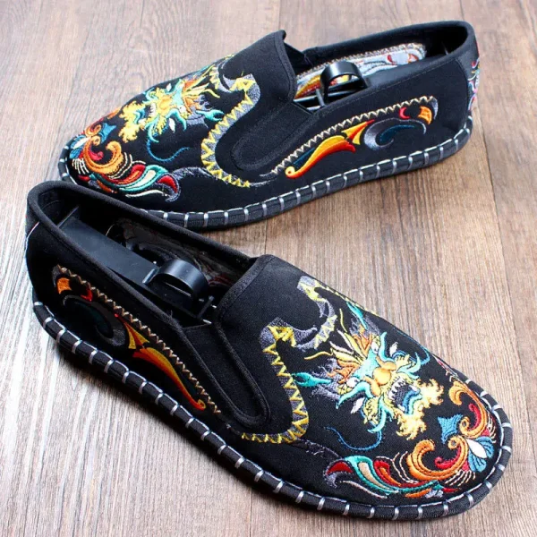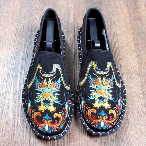 Old Beijing Work Shoes Men’s Casual Cloth Shoes Autumn and Winter Ghost Facial Makeup Chinese-style Embroidered Shoes Male