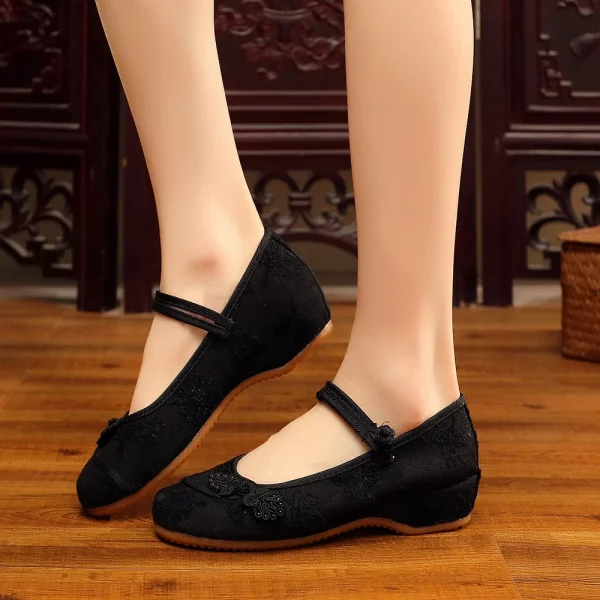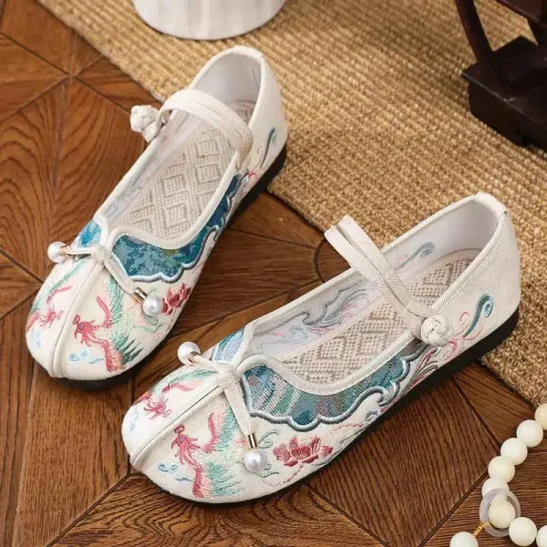 2024 New Women’s Chinese Traditional Flat Sole Embroidered Shoes Soft Sole Round Toe Mary Jane Shoes Ethnic Style Hanfu Shoes