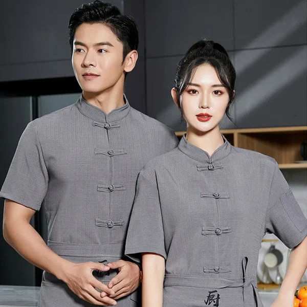 Breathable Unisex Chef Jacket Cotton Linen Restaurant Work Uniform Cooker Tee Tops Kitchen Baker Jacket Cook Waiter Work Wear