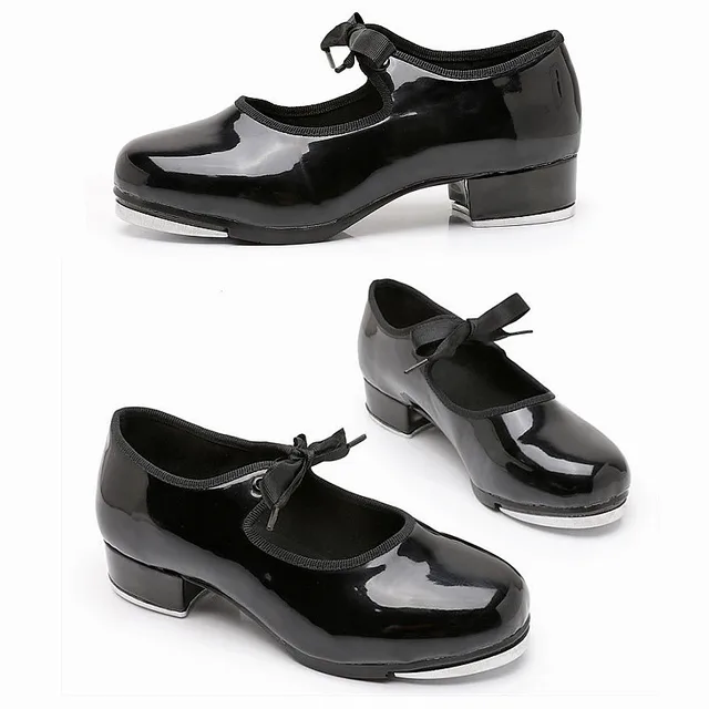 New Women Girls Tap Dance Shoes Shiny Patent PU Leather Laced Black White Red Kids Tap Shoes Teacher Stage Dance Shoes