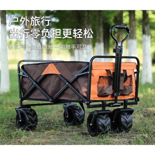 Collapsible Folding Utility Beach Cart Wagon Heavy Duty Large Capacity Fold Wagon Ourdoor Trolley Portable Garden Camping Cart