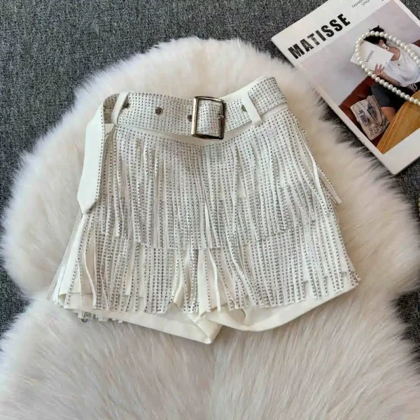 Personality Fashion Tassel Shorts Summer Women’s Diamond Black Sexy Mid Waist Dance Denim Hotpants Temperament Versatile Shorts