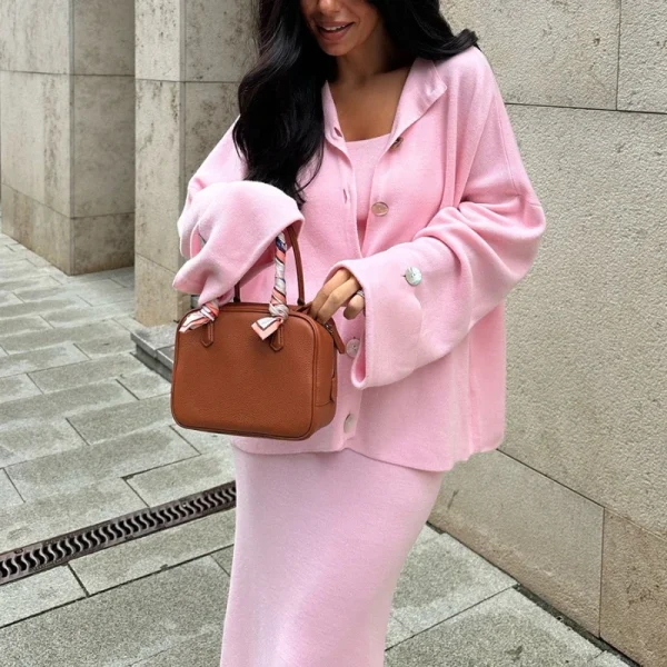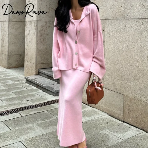 DemoRave New Fashion Kni 3 Pieces Set Women Autumn Elegant Commute Long Skirt Loose Patchwork Camisole Cardigan Maxi Skirt Sets