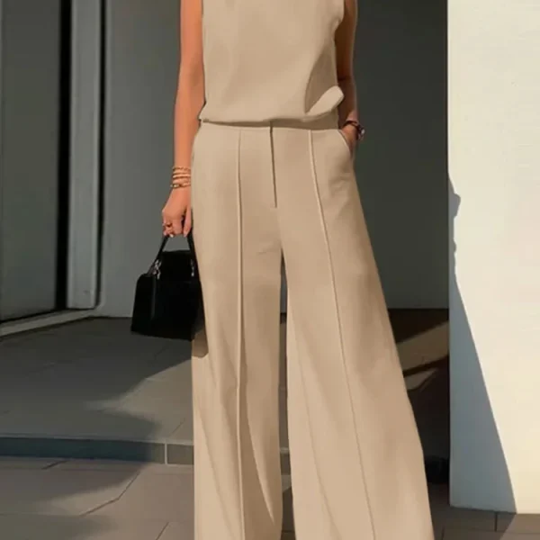 Elegant Women OL Work Wide Leg Trousers Suits Solid Tracksuit 2024 ZANZEA Summer Sleeveless Blouse Casual Pants Sets 2PCS