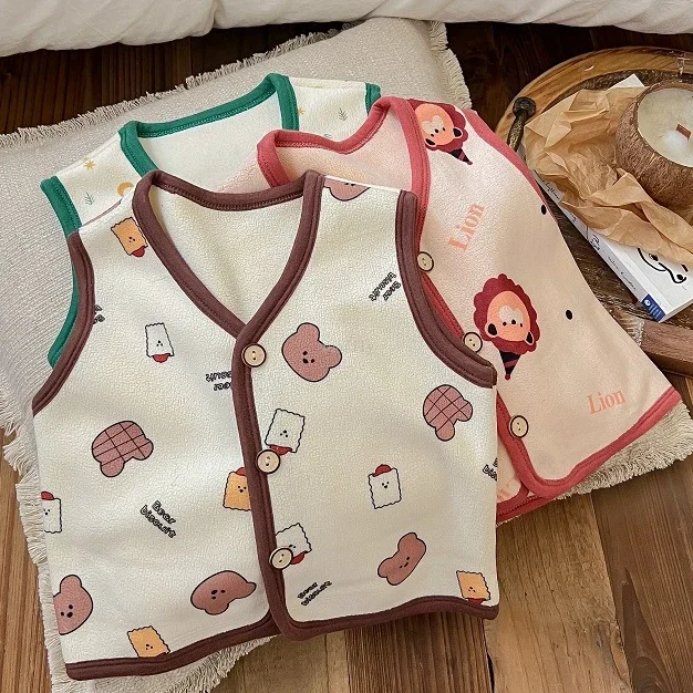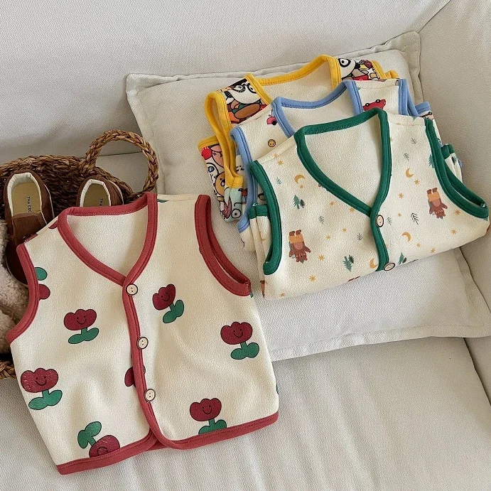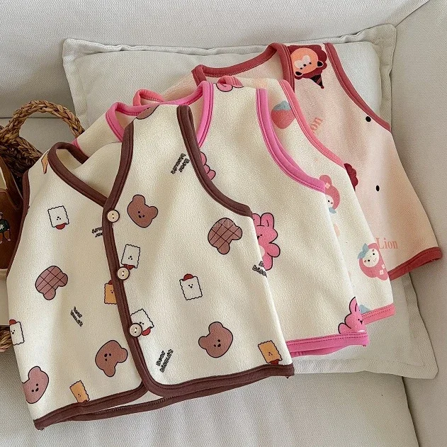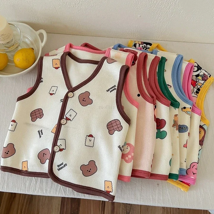 1-6Yrs Kids Velvet Vest Toddler Girl Infant Warm Soft Winter Waistcoat Autumn Sleeveless Jacket Children Spring Cartoon Outwear