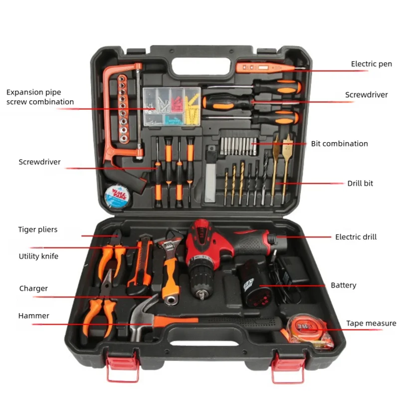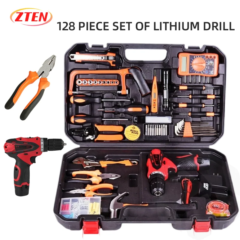 136 Piece Lithium Drill Toolbox Set Manual Daily Household Multifunctional Hardware Tool Electrician Woodworking Maintenance Set