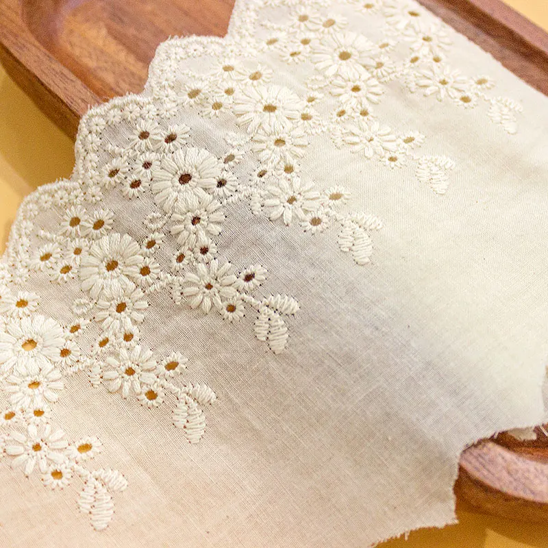1Y Flower Hollow 11CM Wide Cotton Cloth Lace Trim Fabric Clothes Accessories Cuffs Skirt Hem