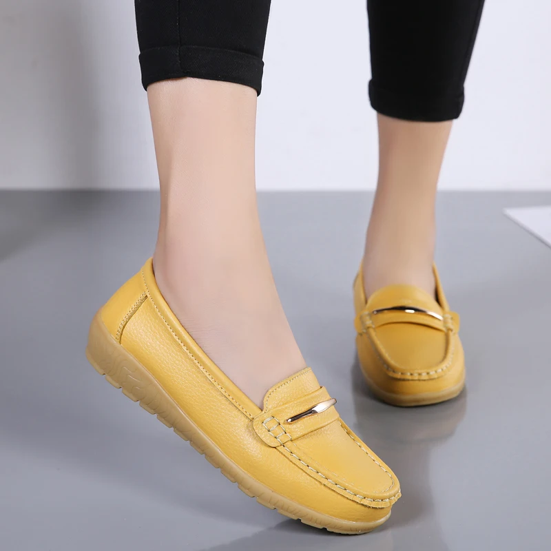 2023 New Genuine Leather Shoes Woman Slip On Women Flats Moccasins Women’s Loafers Spring Autumn Mother Shoe Big Size 35-44