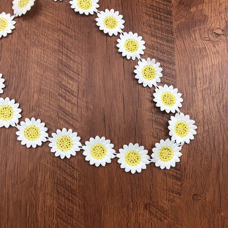 2Y Yellow Daisy Lace Fabric Ribbon Wedding Decoration For Home Sewing Trim Skirt Pillow Curtain Festival Dress Accessories