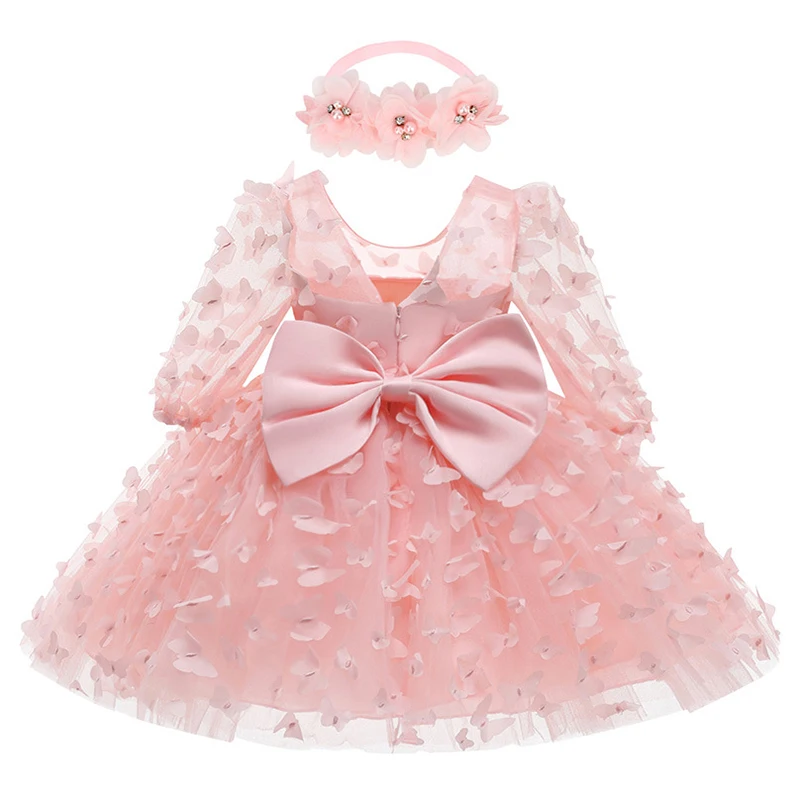 3 6 9 12 18 24 Months Newborn Dress Flowers Mesh Fashion Party Little Princess Baby Dress Christmas Birthday Gift Kids Clothes