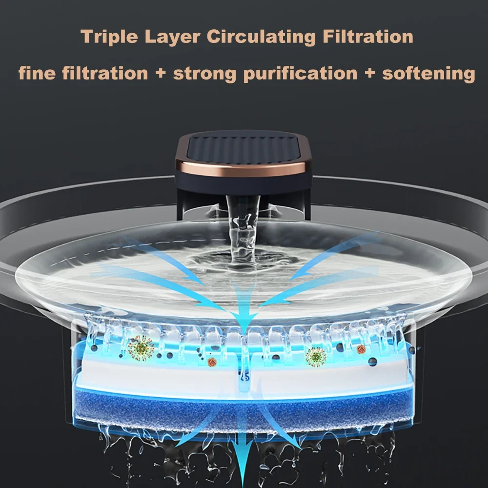 The four-layer filter refreshes fluid by its circulating system which follows the required standard keeps pets away from gastrointestinal diseases:improve the taste of the water,demineralizing the water to reduce the risk, and blocking large particles and large diameter pollutants, etc.