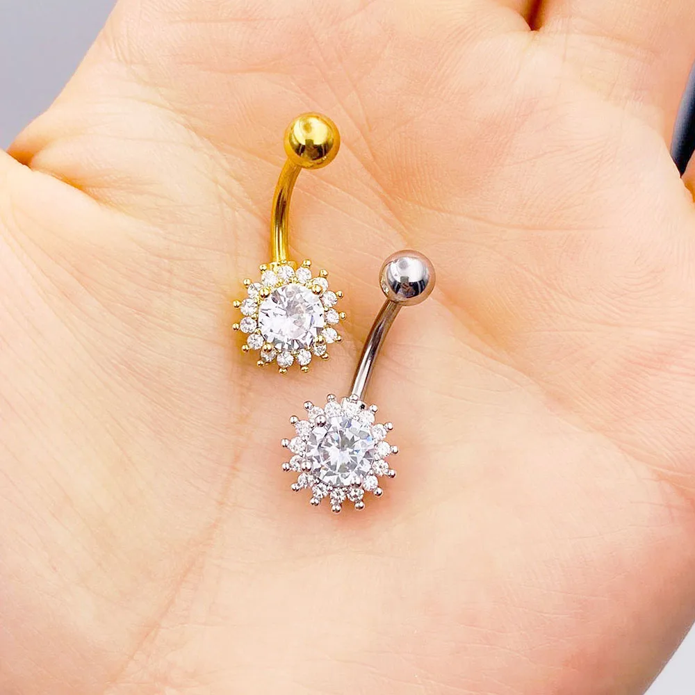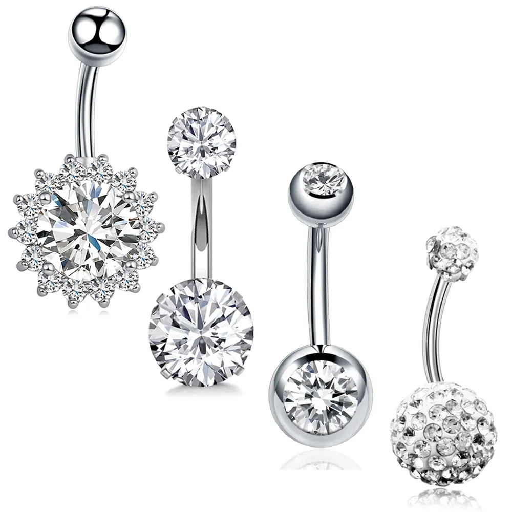 4Pcs/lot Surgical Steel Navel Piercing Sun Flower Belly Button Rings Sexy Women Body Piercings Jewelry Gifts Set