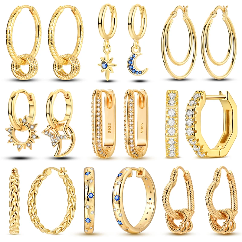 925 Silver Hoop Earring For Woman Rose Gold Yellow Pendientes Original Minimalist Earring Jewelry