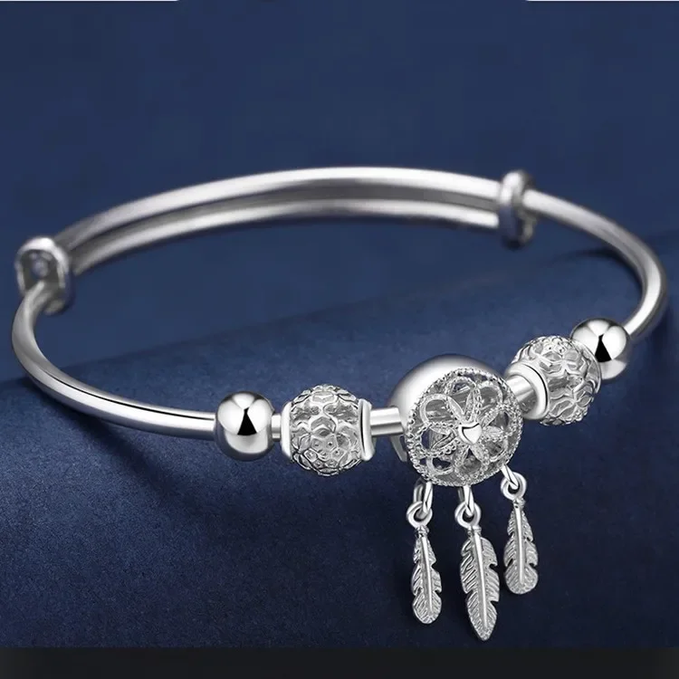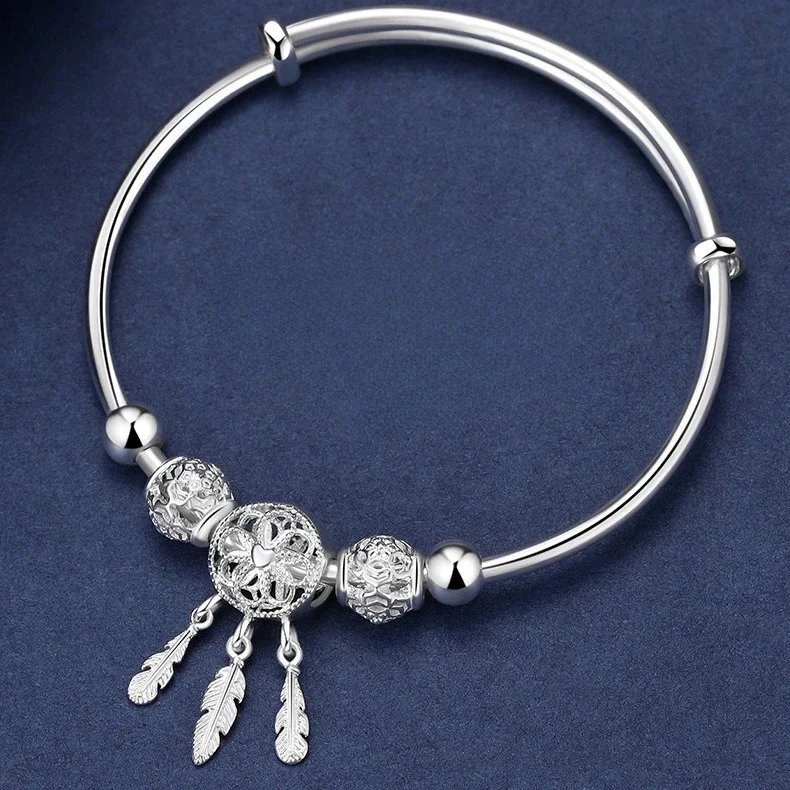 925 Sterling Silver Bead Bracelets For Women Dreamcatcher Tassel Feather Bracelet Bangle Original Party Wedding Jewelry Gifts