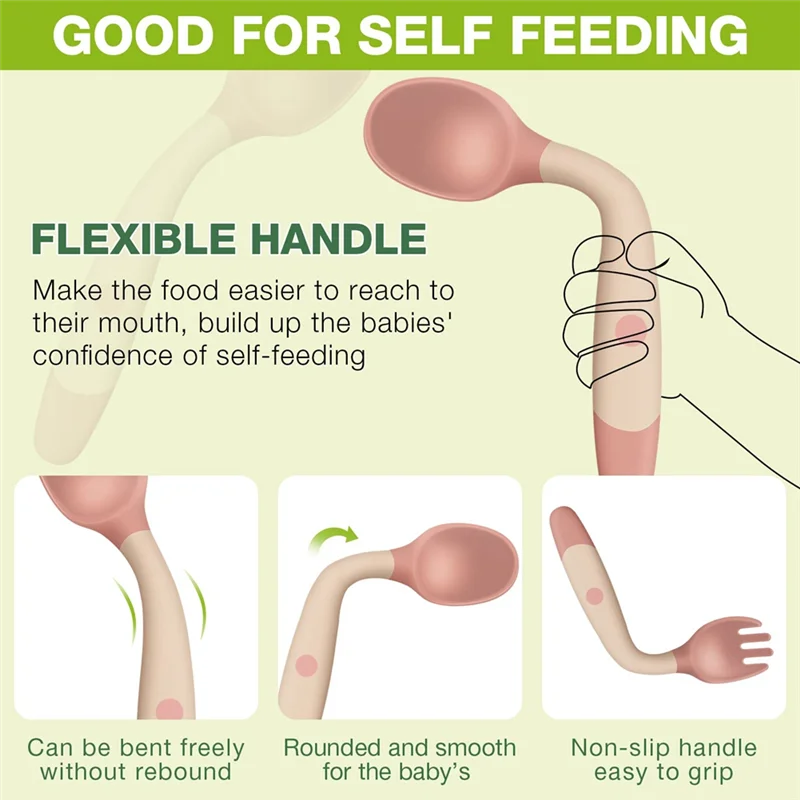 Easy to grasp: The small size is just right for your toddler, which is convenient for the baby to grasp; the spoon mouth is deep enough to ensure that the baby can eat the right amount of food every time, and there are no sharp edges or unsightly corners that will not hurt the baby. The spoon can bend and rebound to adapt to the baby’s different grasping habits, helping the baby to practice independent feeding confidently.
