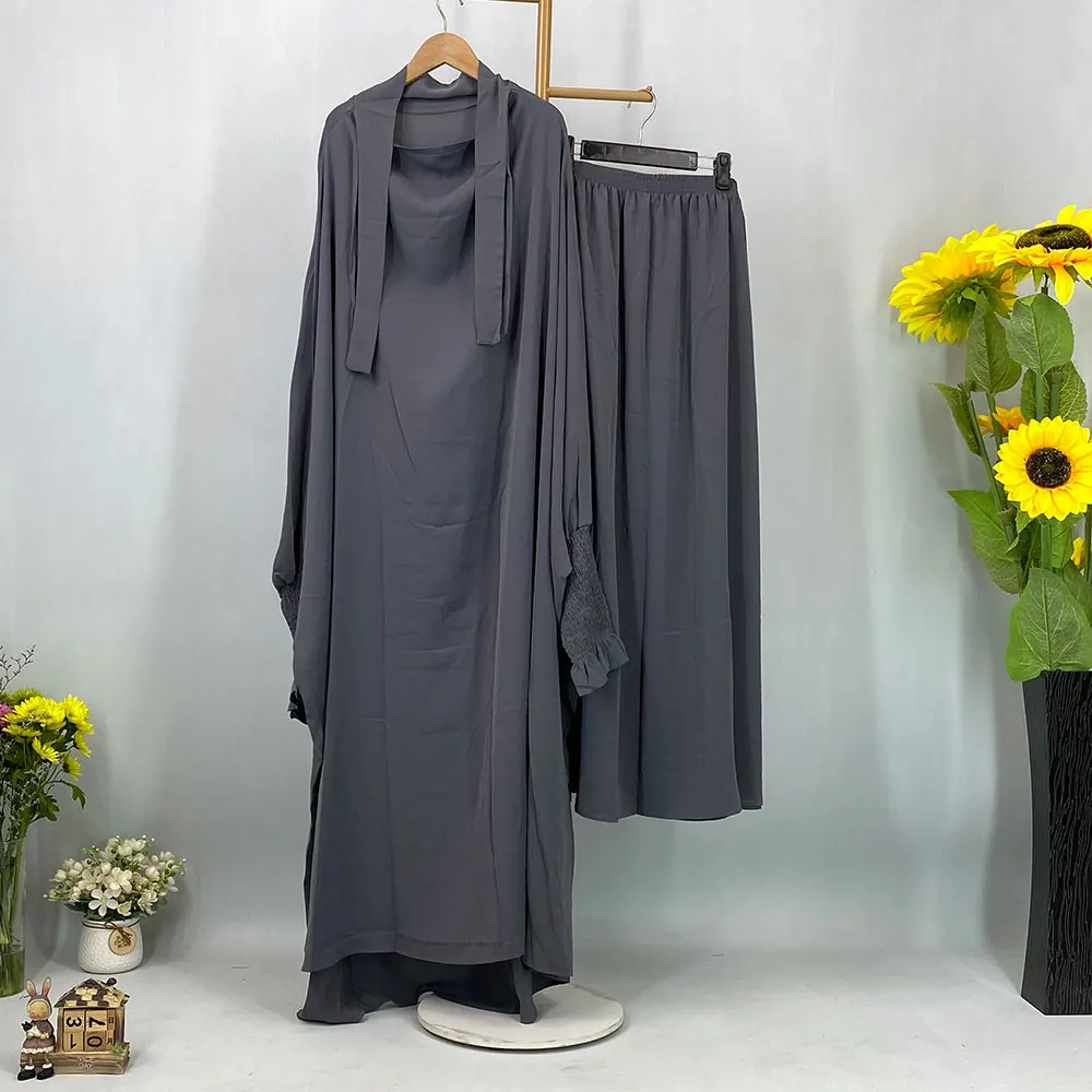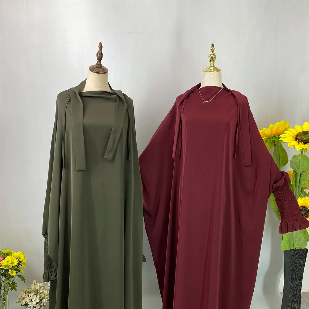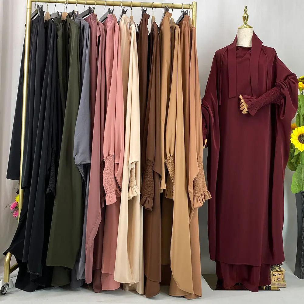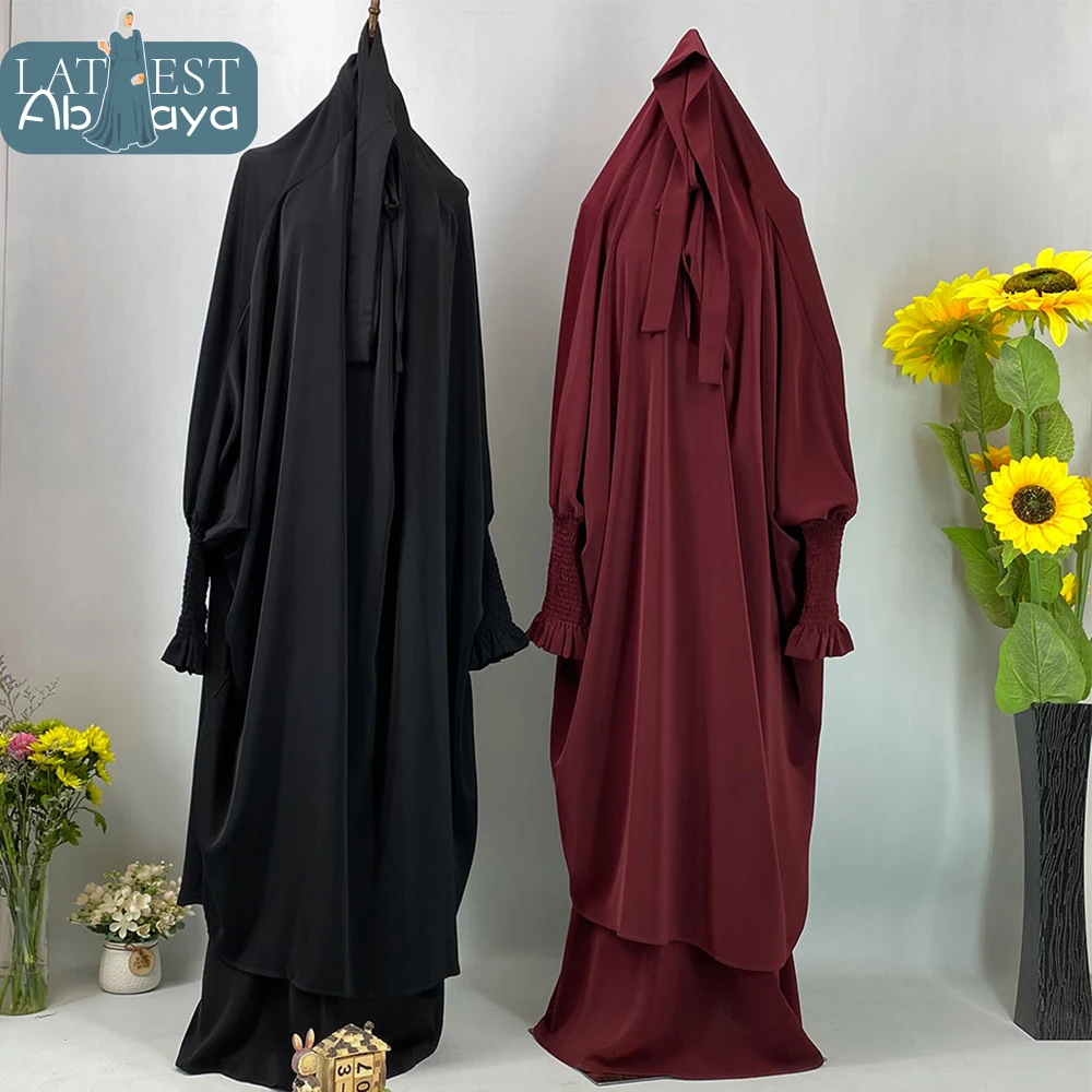 Abaya Khimar Set 2 Piece Ramadan Balloon Sleeve Muslim Dress Women Dubai Luxury Eid Prayer Jilbab Islamic Clothing Kebaya
