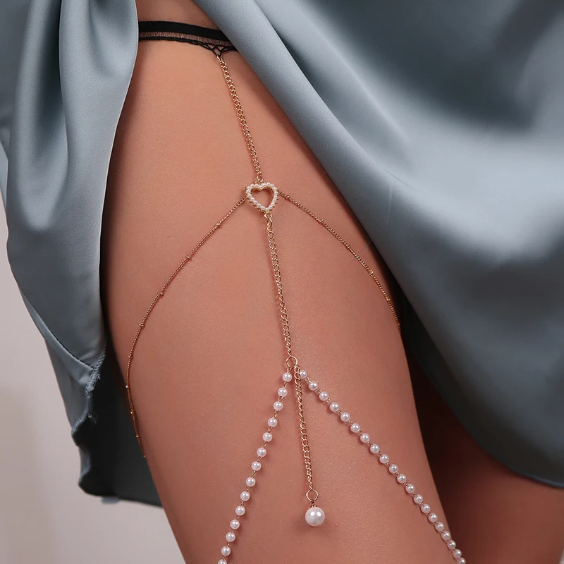 Aihua Bohemia Multilayer Tassel Pearls Leg Chains for Women Adjustable Elastic Thigh Chain on Leg Accessories Sexy Body Jewelry