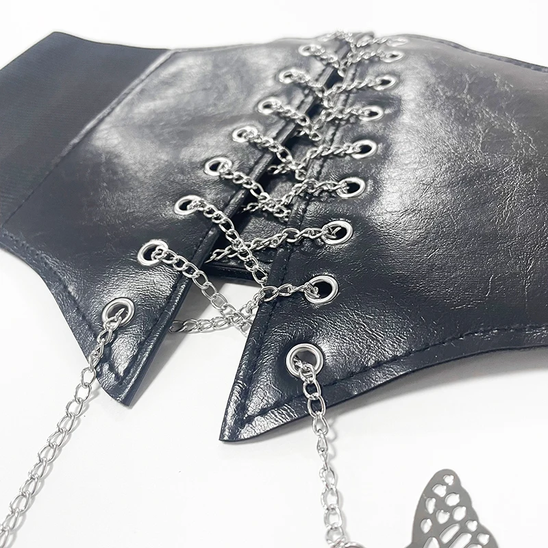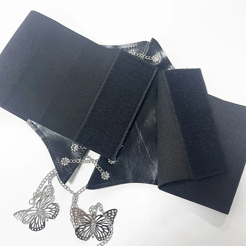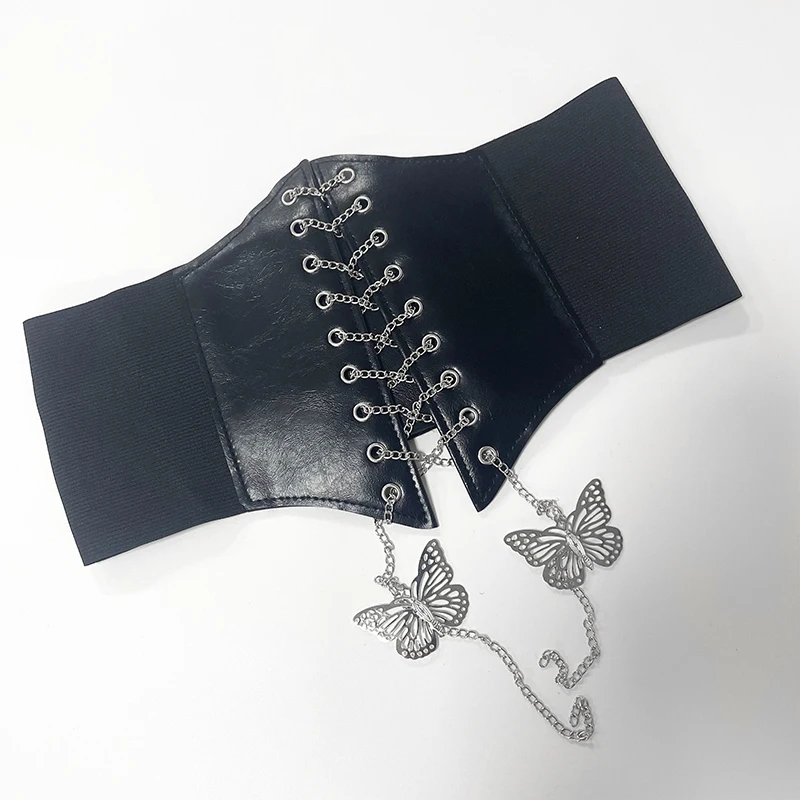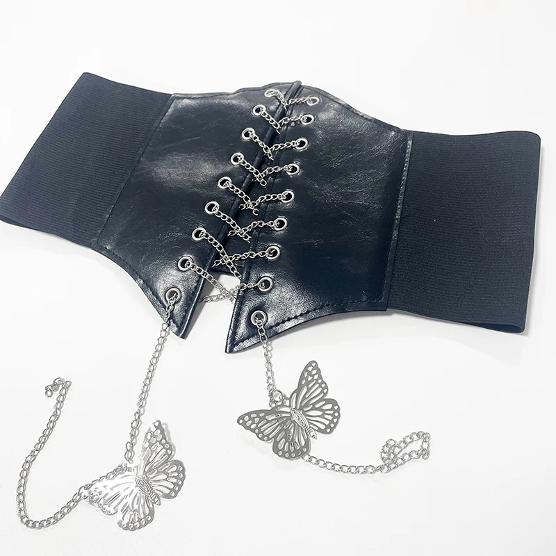 Butterfly Chain Corset Wide Belts Faux Leather Slimming Body Shaping Girdle Belt Women Elastic Tight High Waist for Daily Wear