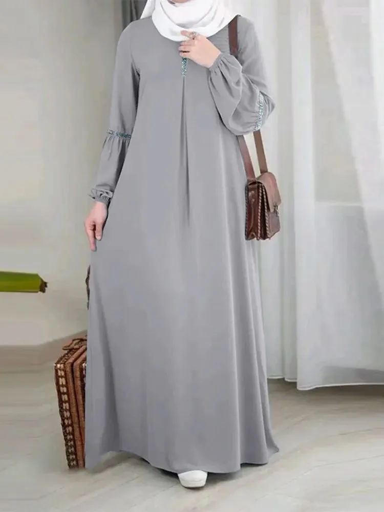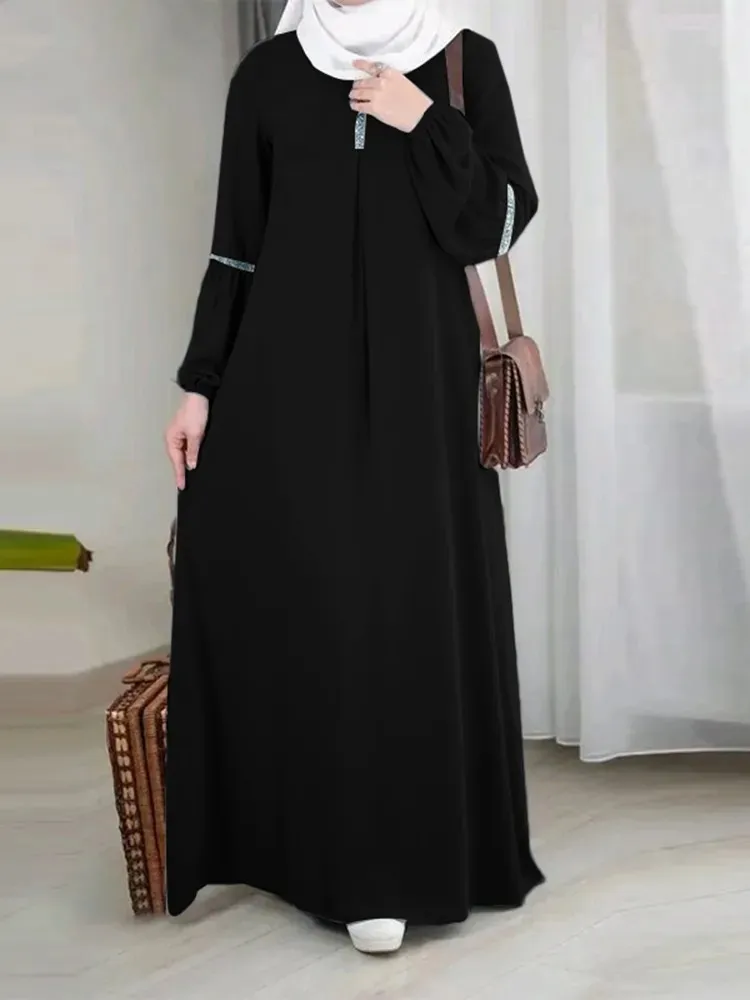 Casual Sequin Sundress Muslim Dress Women Stretch Cuff Kaftan Lislamic Clothing Arabian Dubai Abayas Women Clothes Musulmane