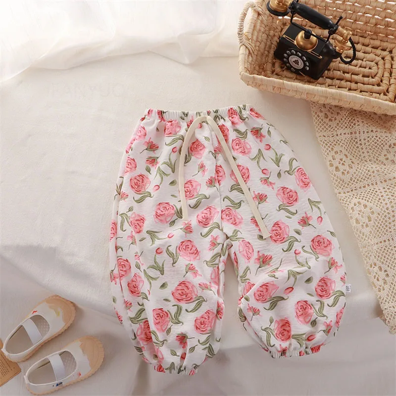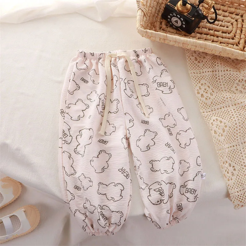 Children Anti-mosquito Pants Summer Thin Breathable Kids Loose Casual Pants Girls Baby Korean Printed Love Cartoon Bear Trousers