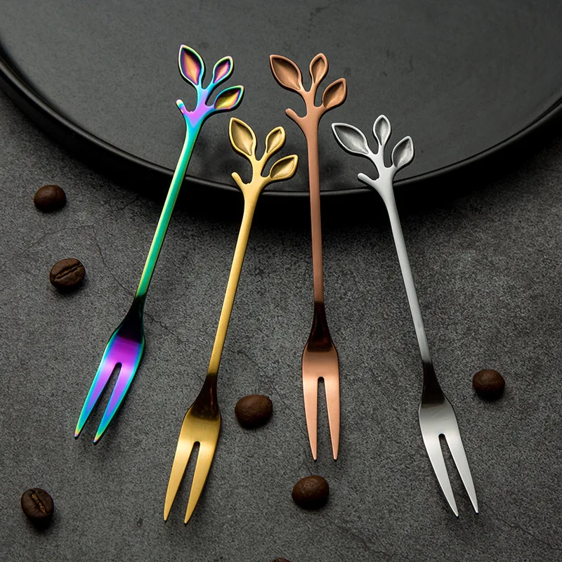 Creative Stainless Steel Leaves Spoon Fruit Fork/Coffee Spoon/Dessert Ice Cream Scoop Kitchen Accessories Tableware Decoration