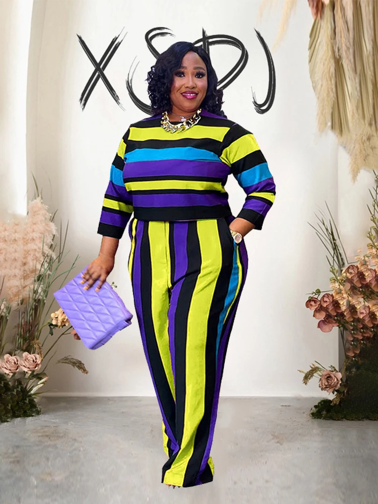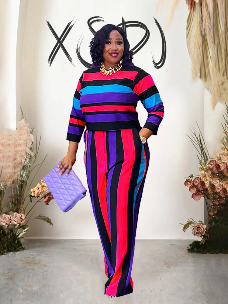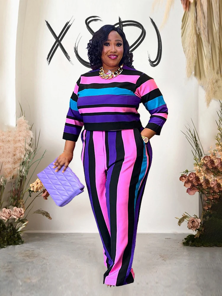 Curvy Woman Clothes Plus Size Autumn 2 Piece Outfit Set Elegant Pants and Blouse Set Ladies Casual Outfits