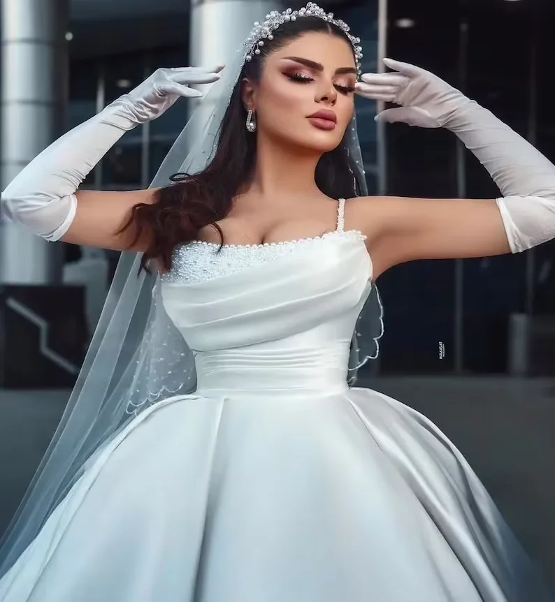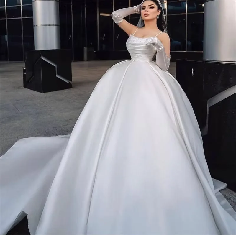 Customized 2025 Luxurious sexy Mordern Strapless A-Line Wedding Dresses Spaghetti Straps Sweep Train atin Princess Bridal Gowns