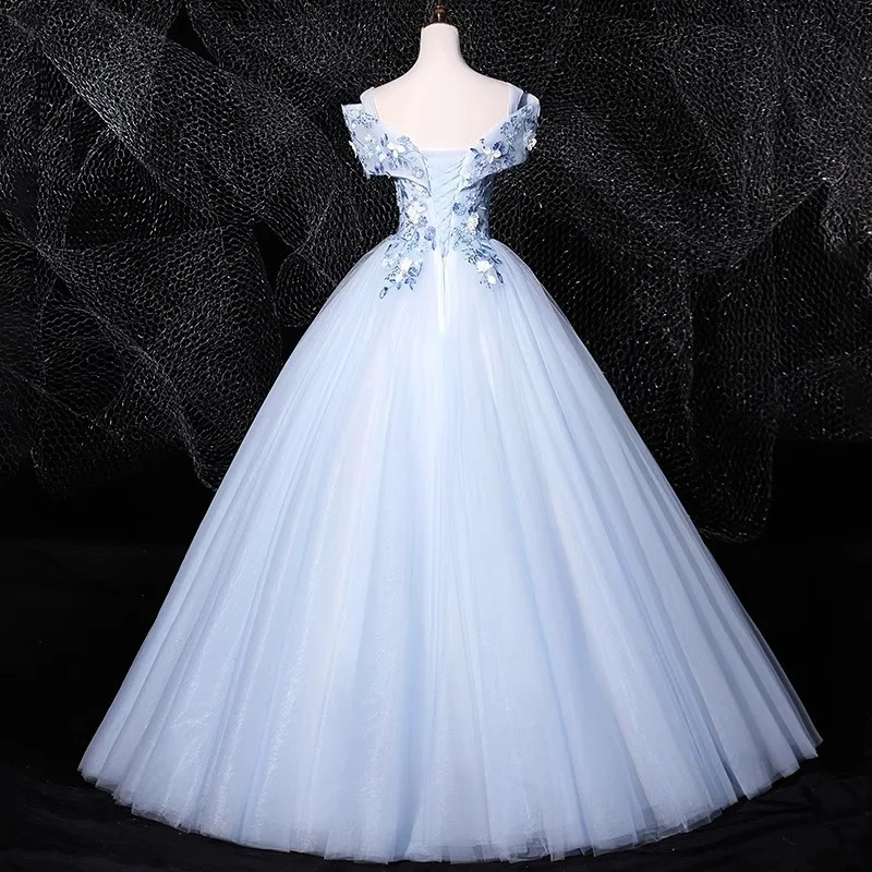 Customized Sky Blue Ball Gown Quinceanera Dresses Appliques V Neck Tulle Prom Birthday Party Gowns Formal Vestido De Noche