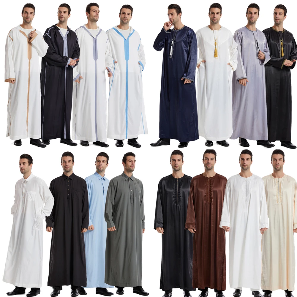 Muslim Robes Islamic Men Clothes Arabic Embroidered Dress Jubba Thobe Indian Men's Wedding Gentleman Thobe Kaftan Ropa Costumes