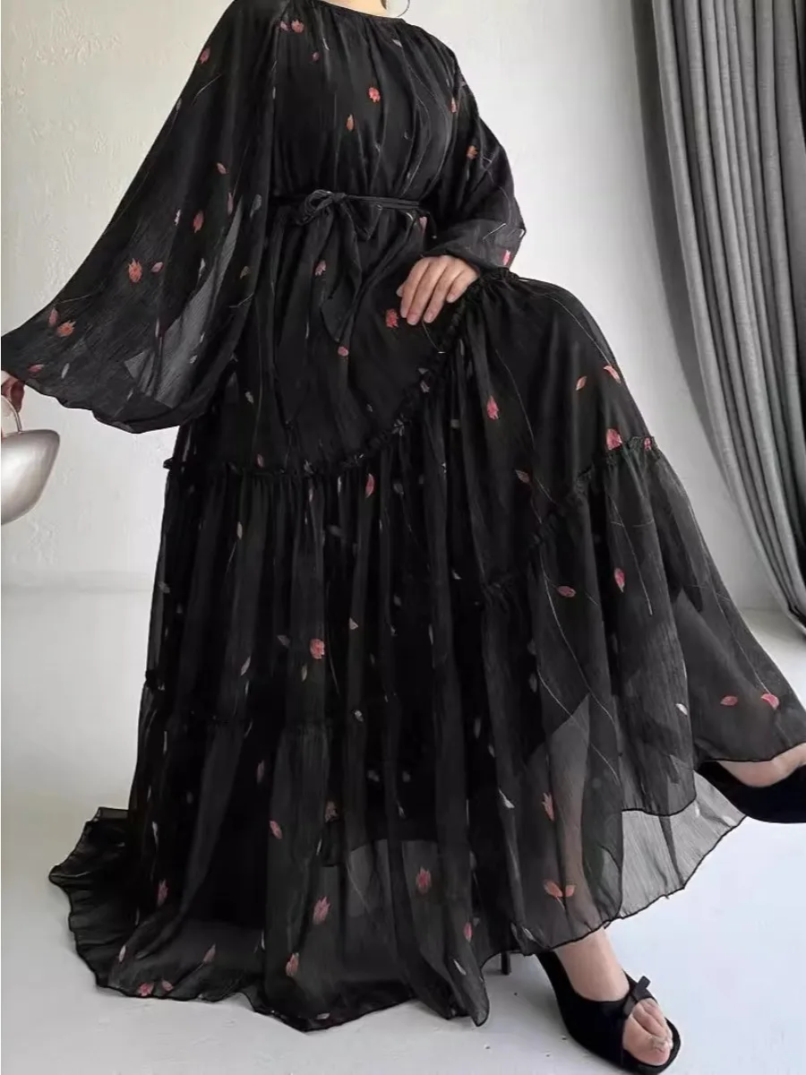 vestidos Muslim Turkish Loose Casual Lace-ups Cardigan Ramadan Robe Dubai luxury Abayas For Women Femme Evening Maxi Dresses