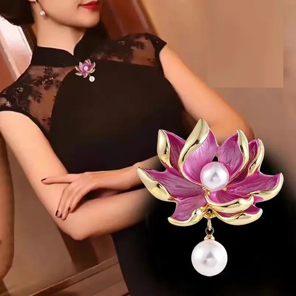 Exquisite Lotus Brooches for Ladies Cheongsam Accessories Chinese Style Pink Lotus Lapel Pins