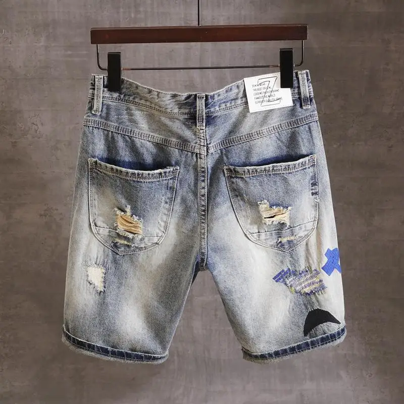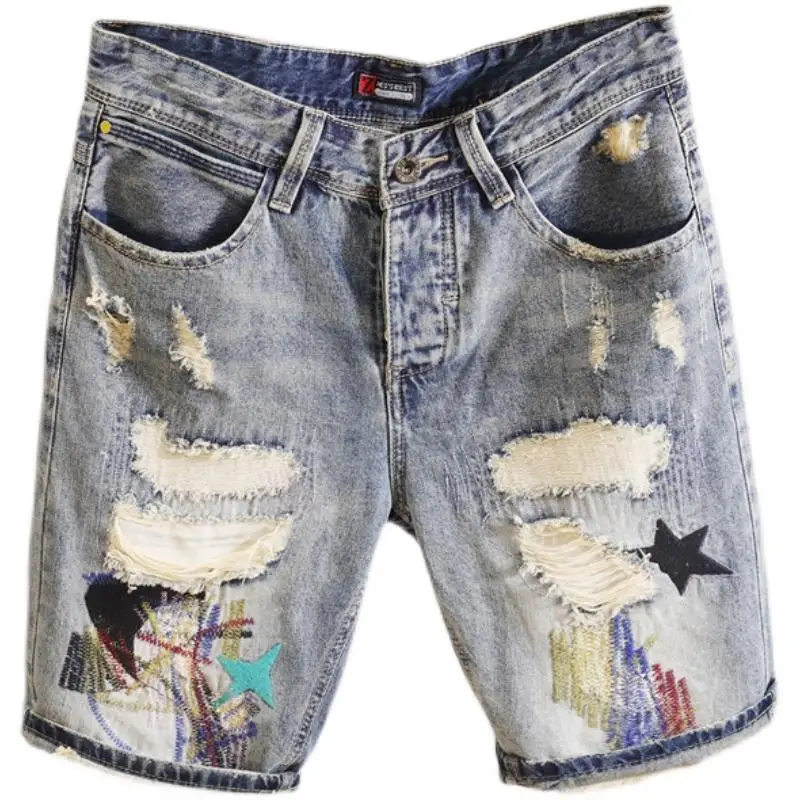 Fashion Trendy Casual Denim Knee Length Jeans for Men Summer Classic Stylish Embroidered Denim Shorts for Cowboy Male Shorts