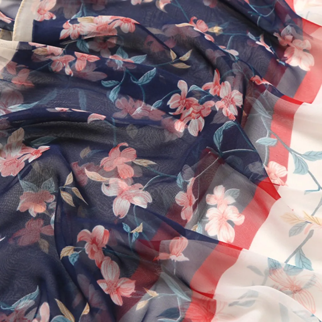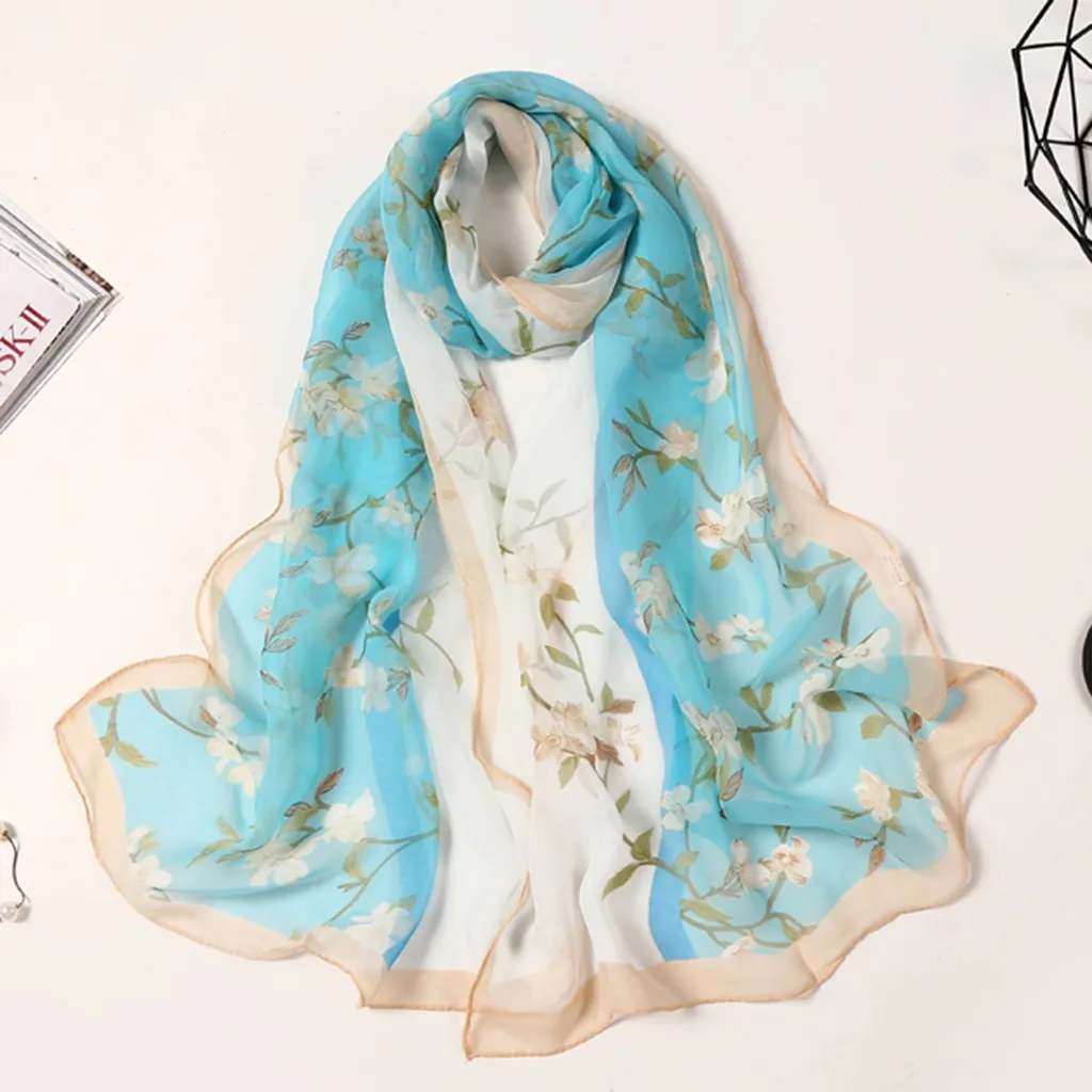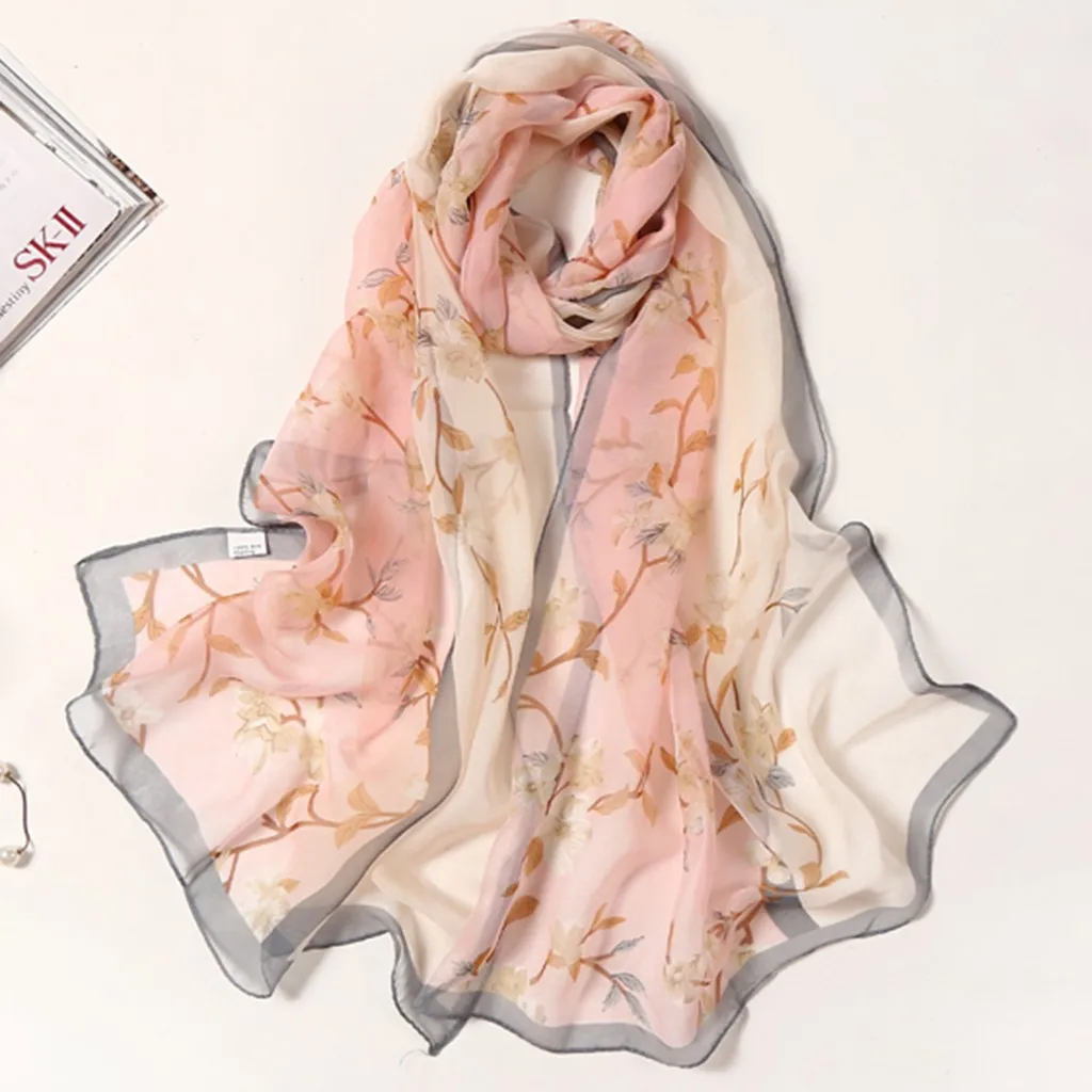 Floral Print Silk Scarf Women Elegant Scarves Soft Shawls and Wraps Female Beach Sunscreen Hijab Bandana Headscarf Foulard