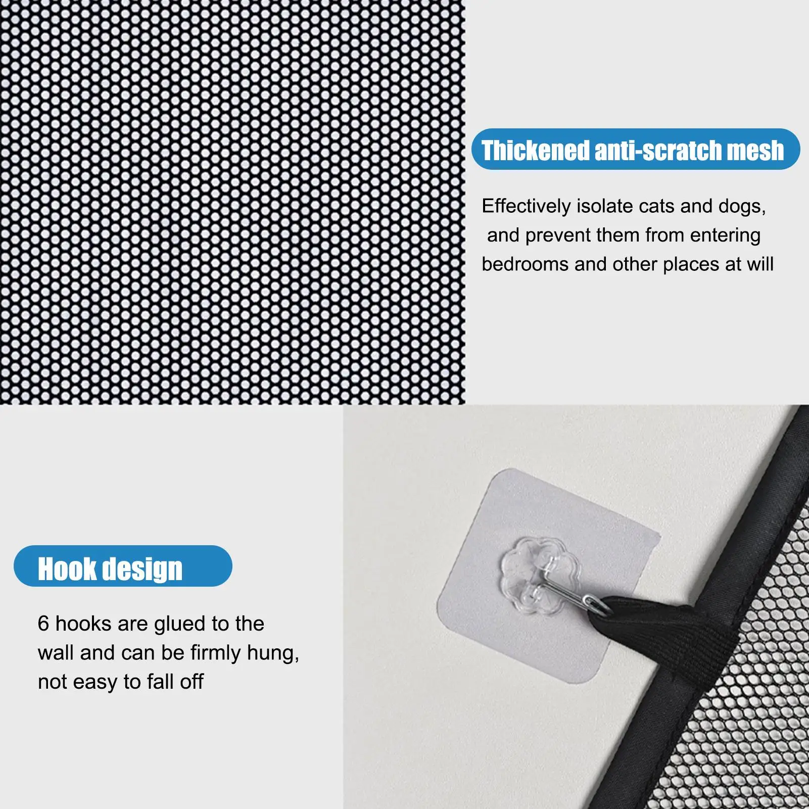 This folding mesh cat gate delivers a dependable safety barrier for families with young children and pets like kittens, bunnies, or toddler. Designed for hallways, porches, garages, kitchens, bedrooms, living rooms, and apartments, it serves as must-have childproofing supplies while providing a secure, yet adaptable solution for any space.