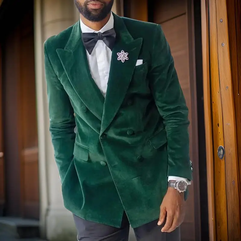 Green Velvet Smoking Suit Jacket for Men Suit 2024 Slim Fit Peak Lapel Custom Wedding Tuxedo Blazer 1 Pc African Fashion Coat