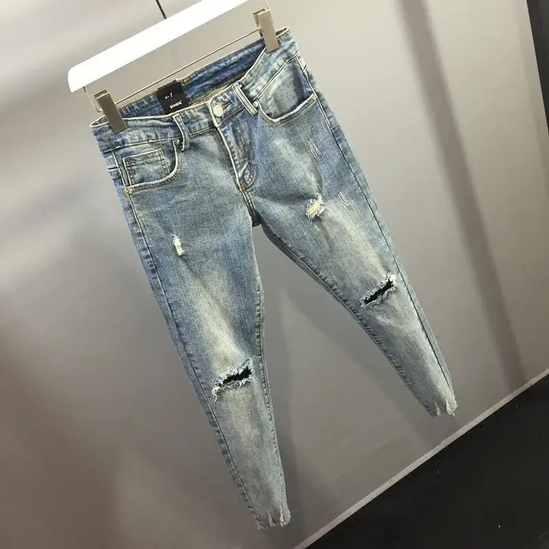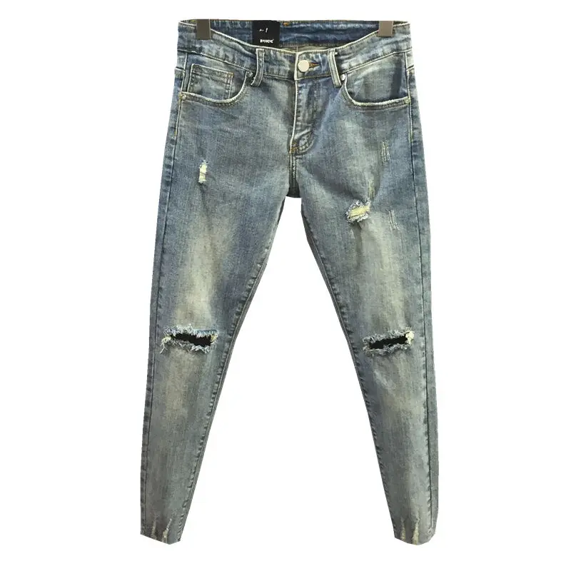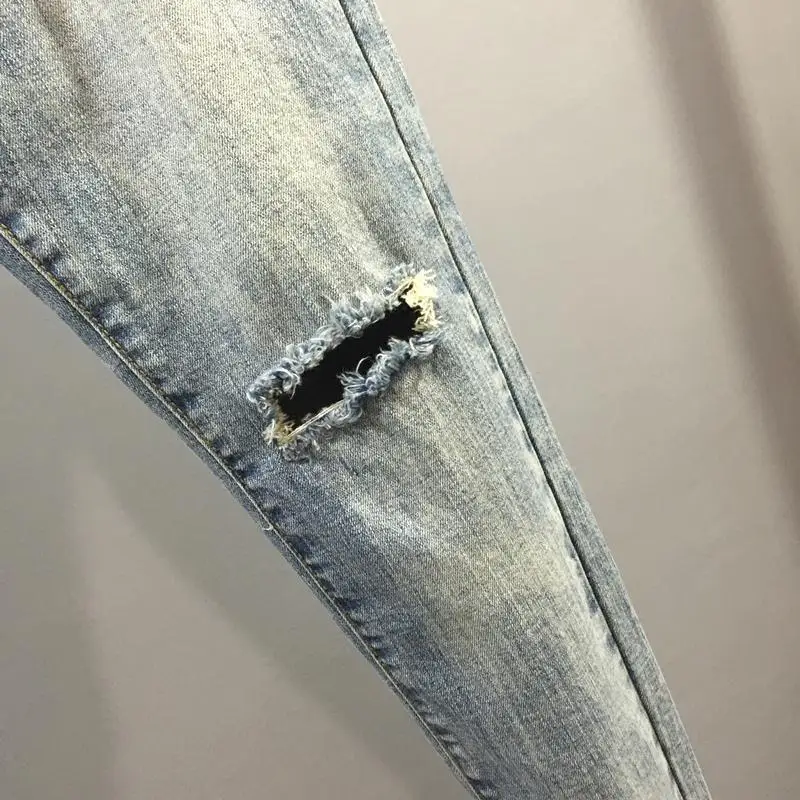 Harajuku Fashion Luxury Clothing Men’s Vintage Ripped Denim Jeans Slim Casual Spring Autumn Boyfriend Pencil Pants Washed Jeans