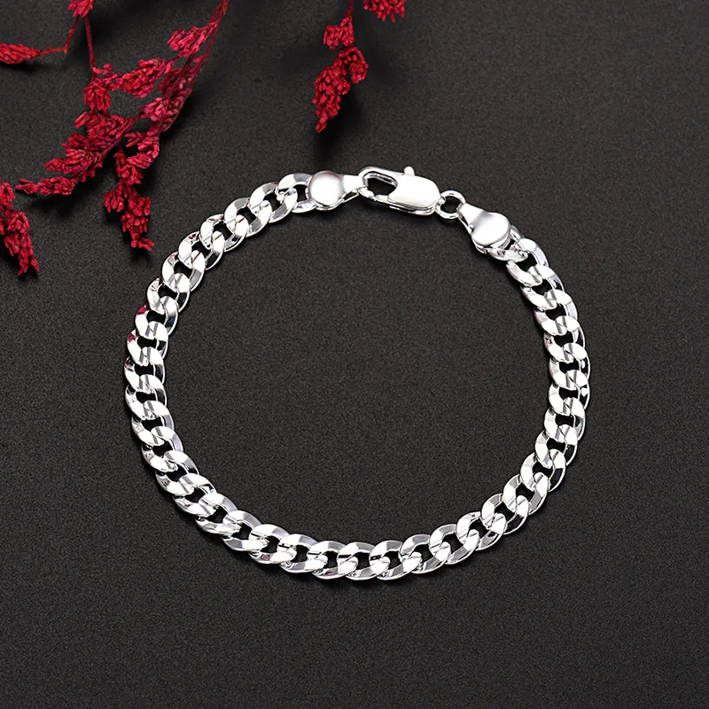 Hot high quality 925 Sterling silver charm 7MM Chain bracelets neckalces jewelry set for man women fashion Party wedding gifts