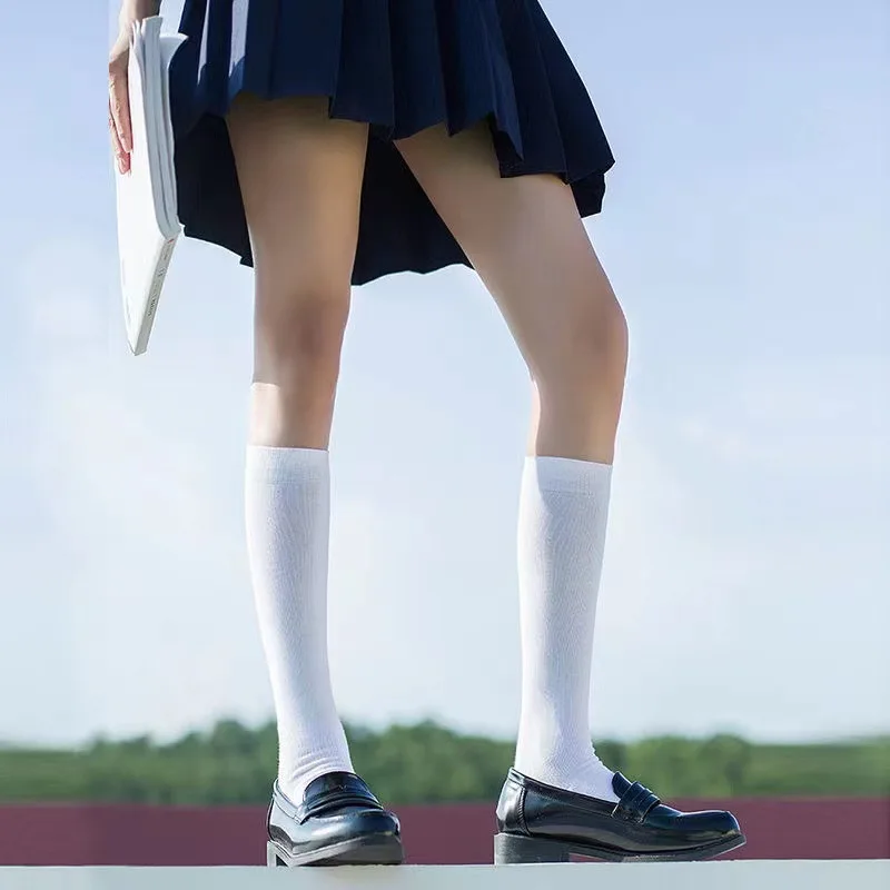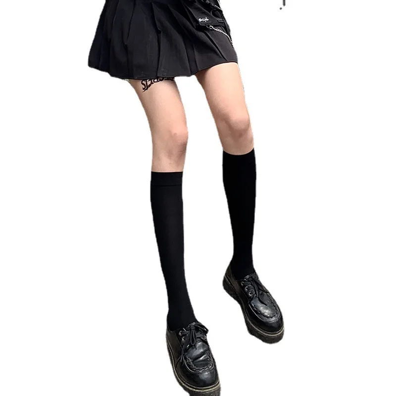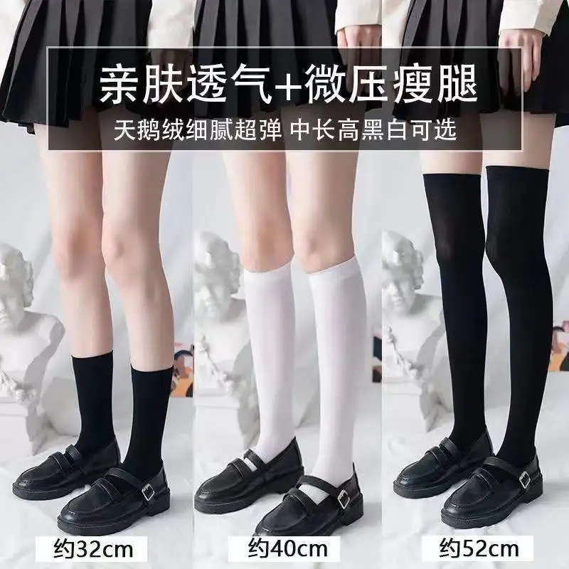 JK Women Black White Knee High Lolita Socks Lady Girls Over Knee Cute Long Sock Thin Breathable Solid Color Stockings For Women