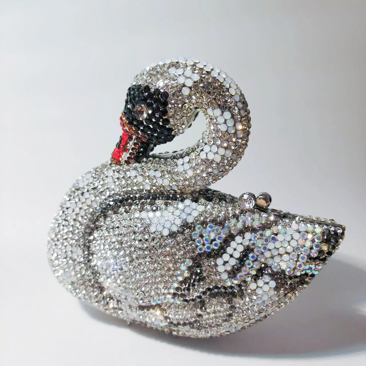 Lady Full Crystals Evening Clutch Purses Women Animal Swan Rhinestones Day Clutches Metallic Handbags Party Wedding Gems Purses
